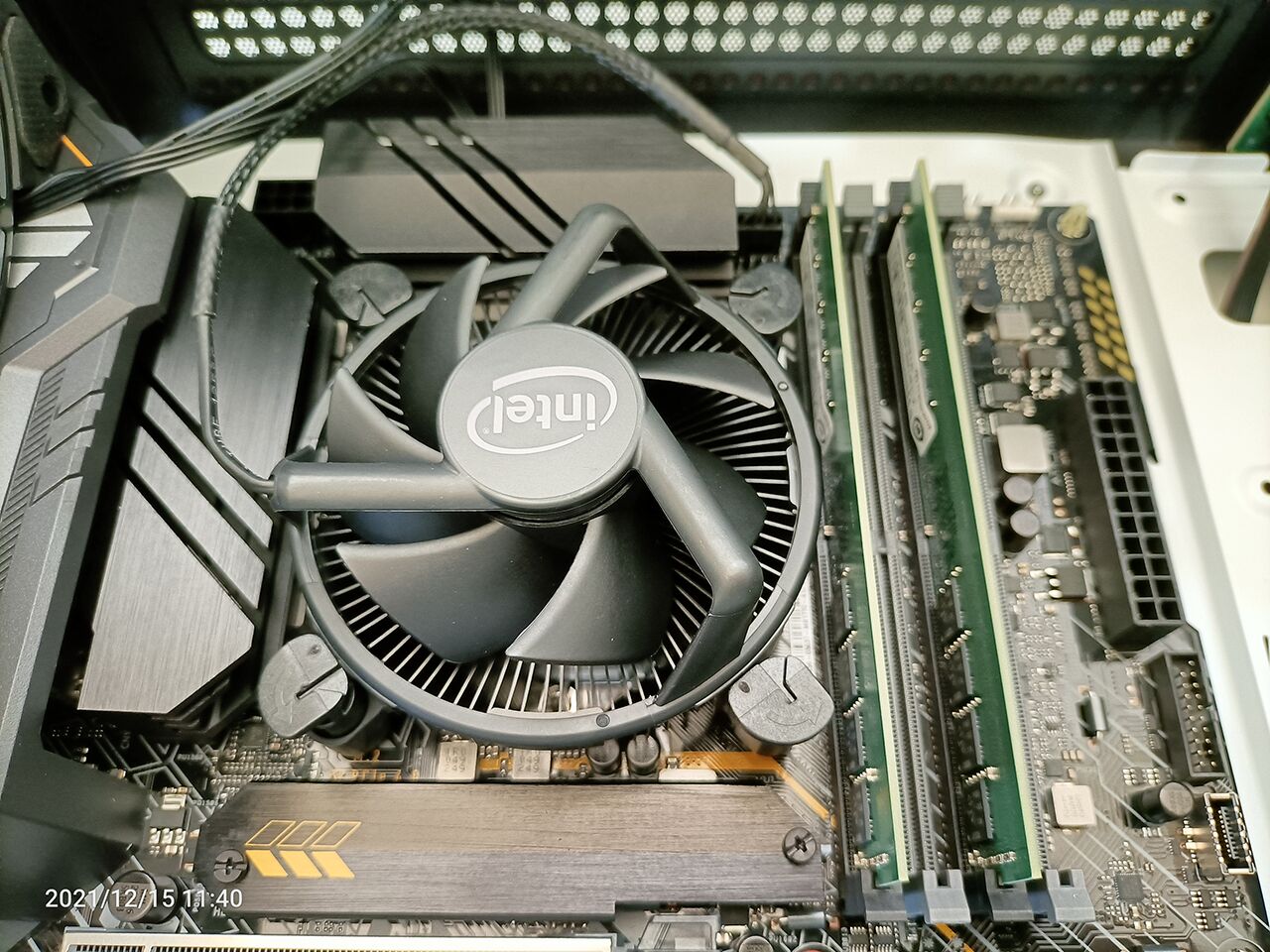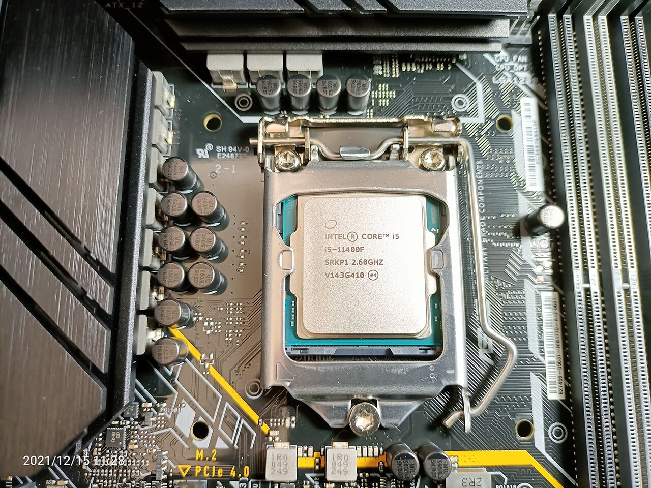 接着將 Intel i5-11400F CPU 組裝到主機板,請留意 CPU 和底座的方向性,這顆 CPU 沒有內顯,所以要另外加裝顯示卡。