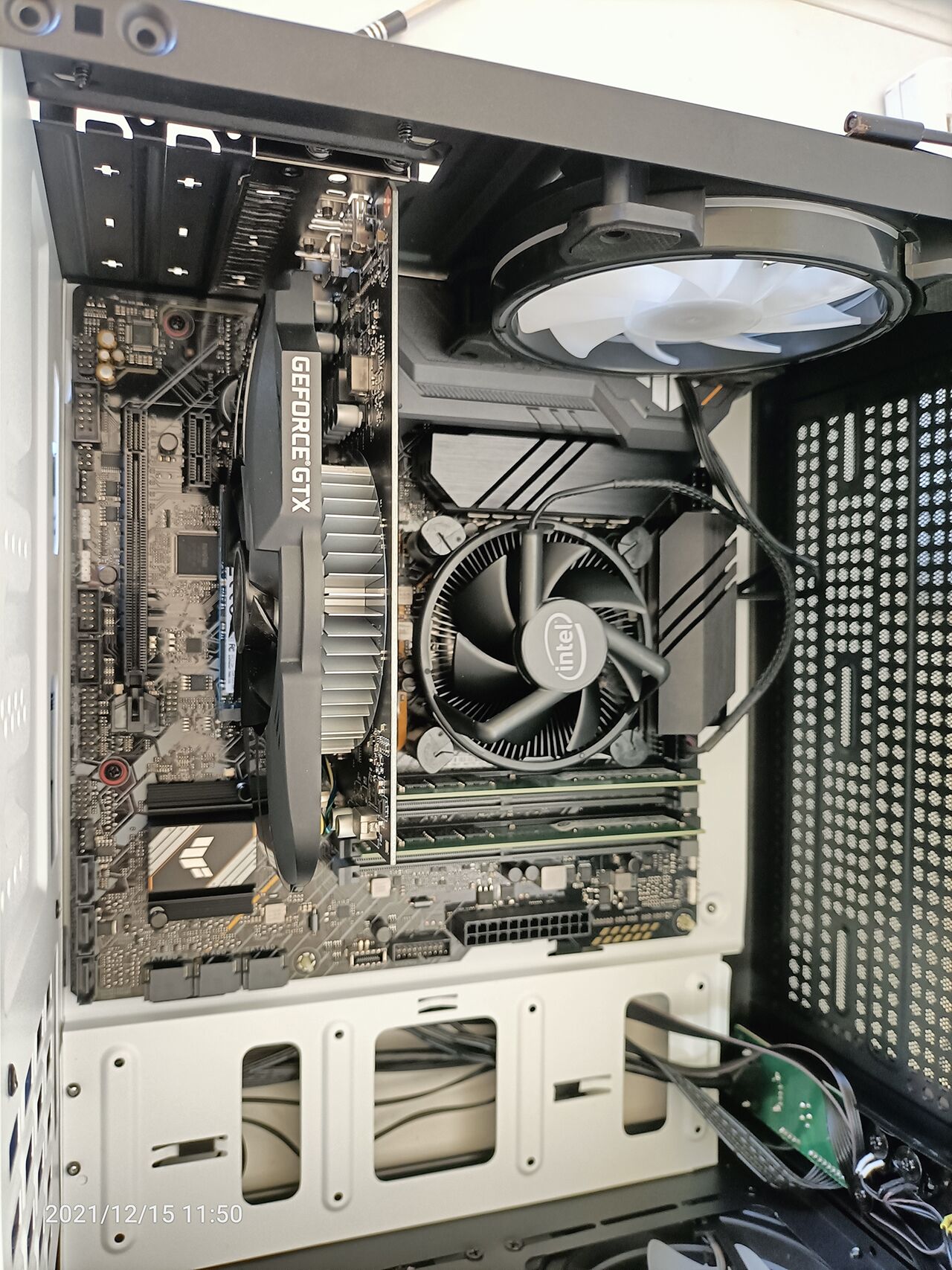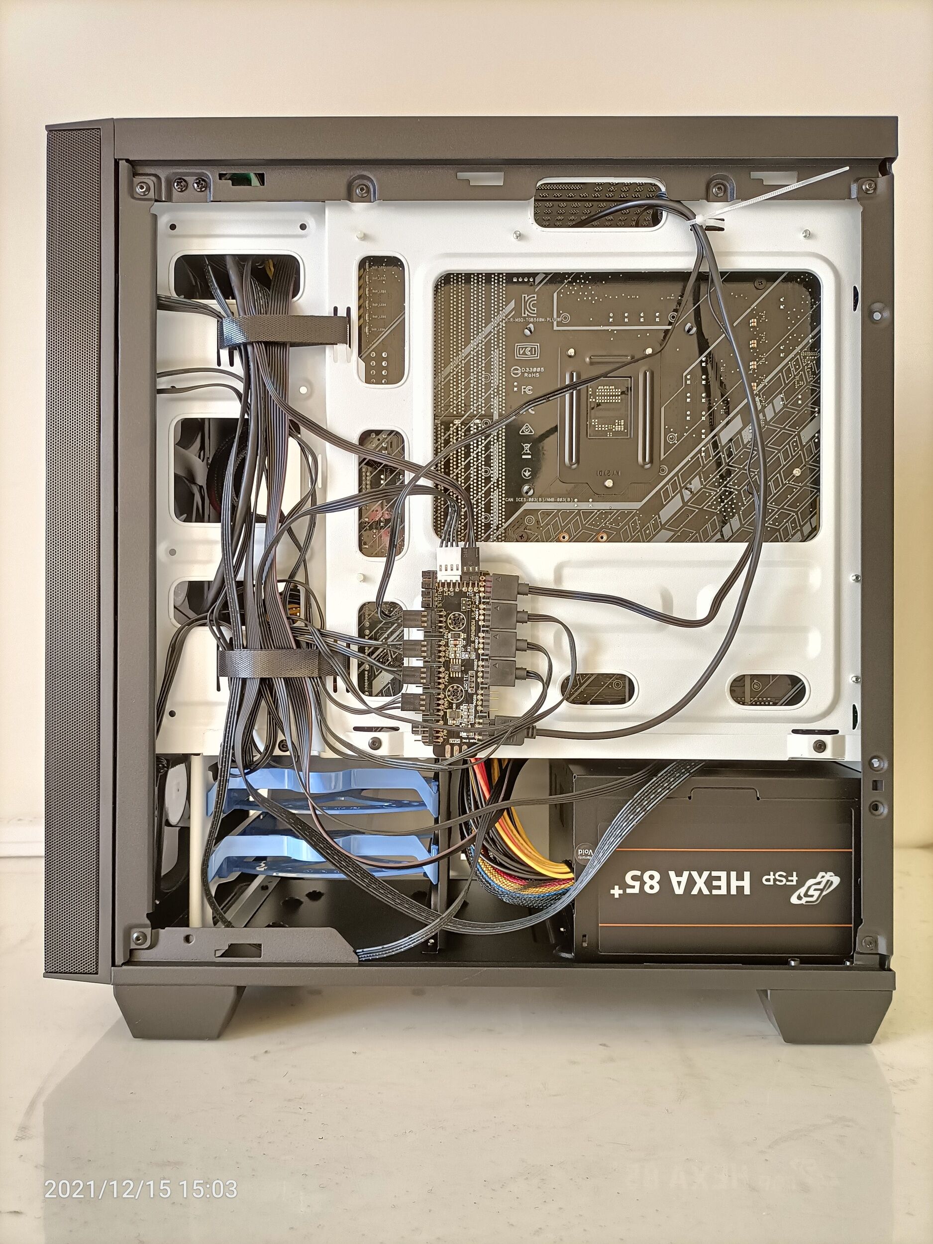 最後的步驟就是把電源供應器排線、CPU 風扇電源線、機殼面板排線、AURA Sync 排線…等都正確連接到主機板上,這樣就完成硬體組裝了。