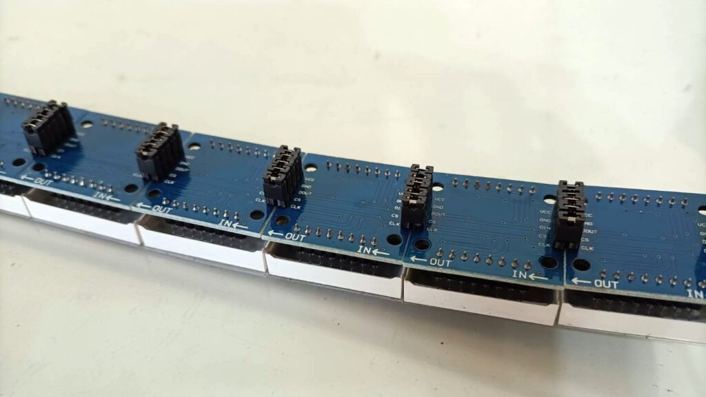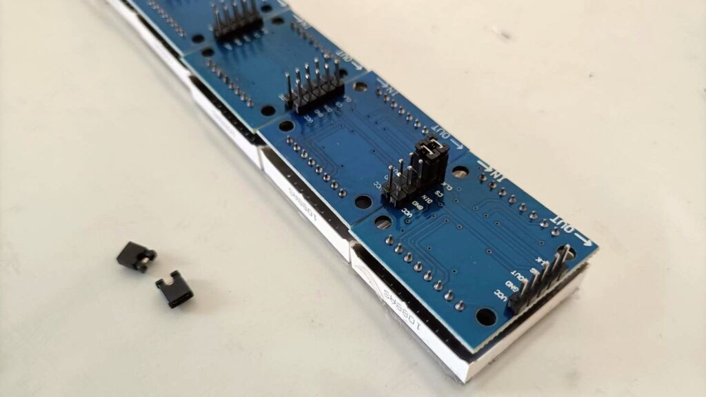 接著以跳線帽(Jumper)串接數個 8*8 顯示器。