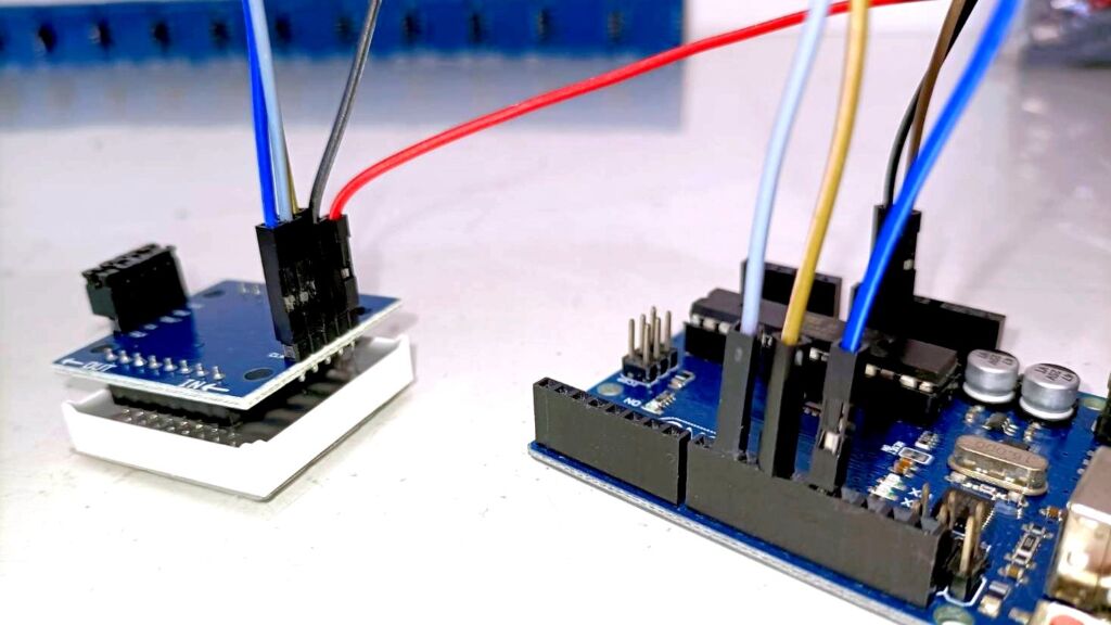 先將排線依序連接至已上傳程式碼的 Arduino 開發板,並連接電源供應器。